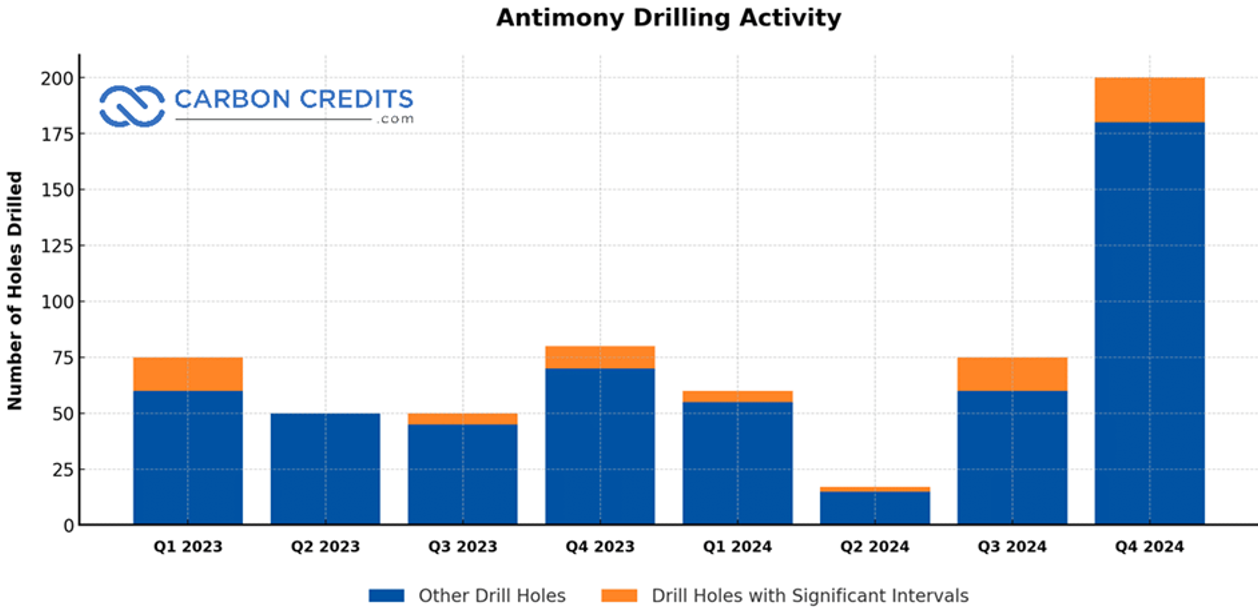 Zudem weist Australien global betrachtet die höchste Antimon-Bohrungsaktivitäten aus, mit 444 von insgesamt 625 Bohrlöchern in den Jahren 2023 und 2024.