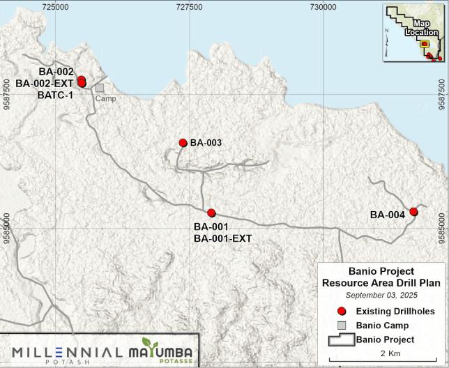 So konnten jüngst mächtige, lateral durchgehende Kalizonen bestätigt werden, mit Durchschnittsgehalten von 15,9 % KCl (13 % Cutoff) über 112,5 m in Bohrloch BA-001-EXT und 16,8 % KCl (13 % Cutoff) über 100 m in Bohrloch BA-004.