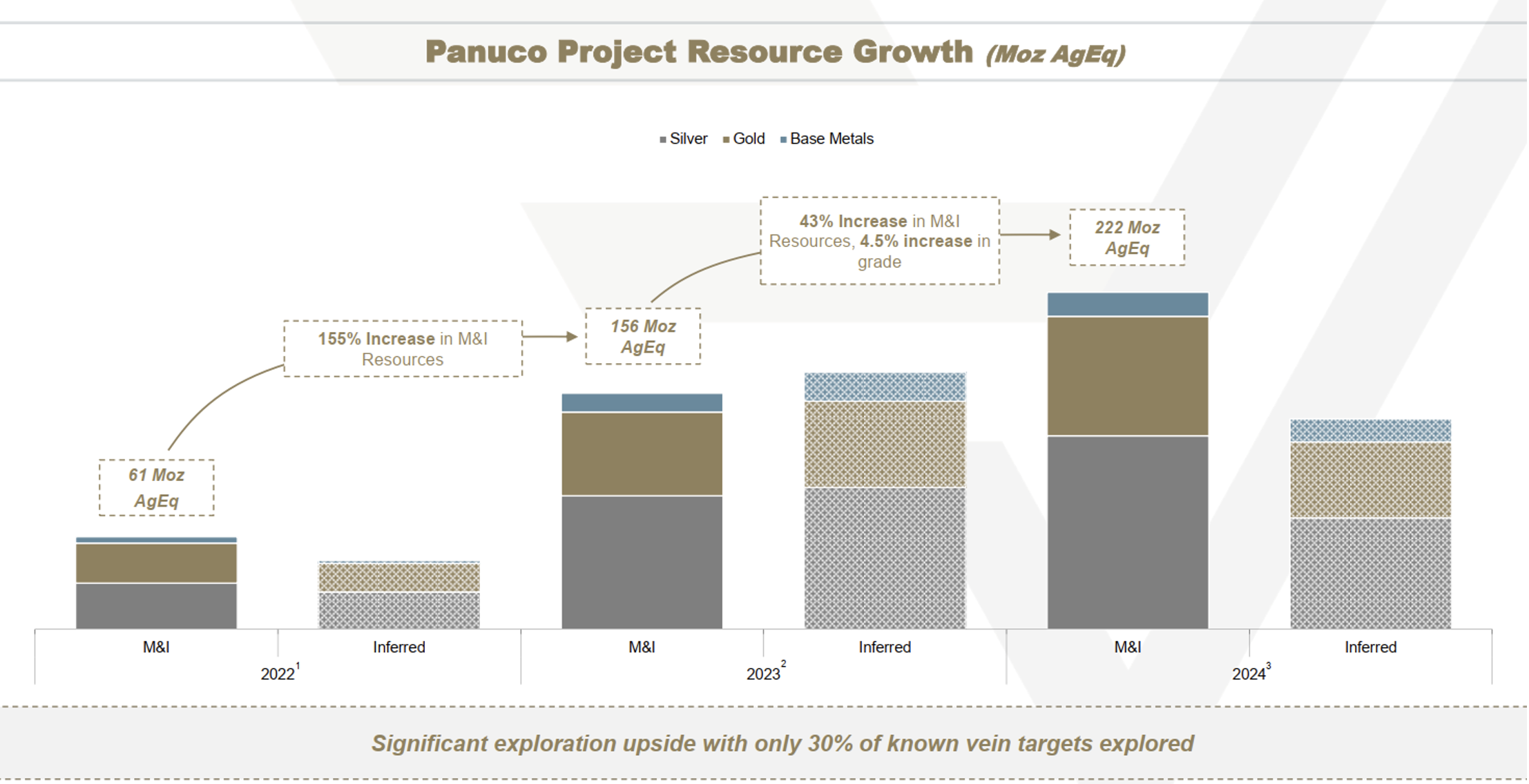 Ein Blick auf die Ressourcenschätzungen sowie die wirtschaftliche Bewertung sind dabei mehr als beeindruckend. Die vorläufige wirtschaftliche Bewertung (PEA) vom Juli 2024 ergab eine Lebensdauer der Mine von 10,6 Jahren mit einer Produktion von jährlich mehr als 15 Mio. Unzen Silberäquivalent (AgEq), bzw. mehr als 9 Mio. Unzen Silber. Im Januar 2025 veröffentlichte Vizsla Silver zudem die Ergebnisse seineraktualisierten Mineralressourcenschätzung die einen Anstieg der M&I-Unzen um 43 % auf 222,4 Millionen Unzen AgEq auswies.