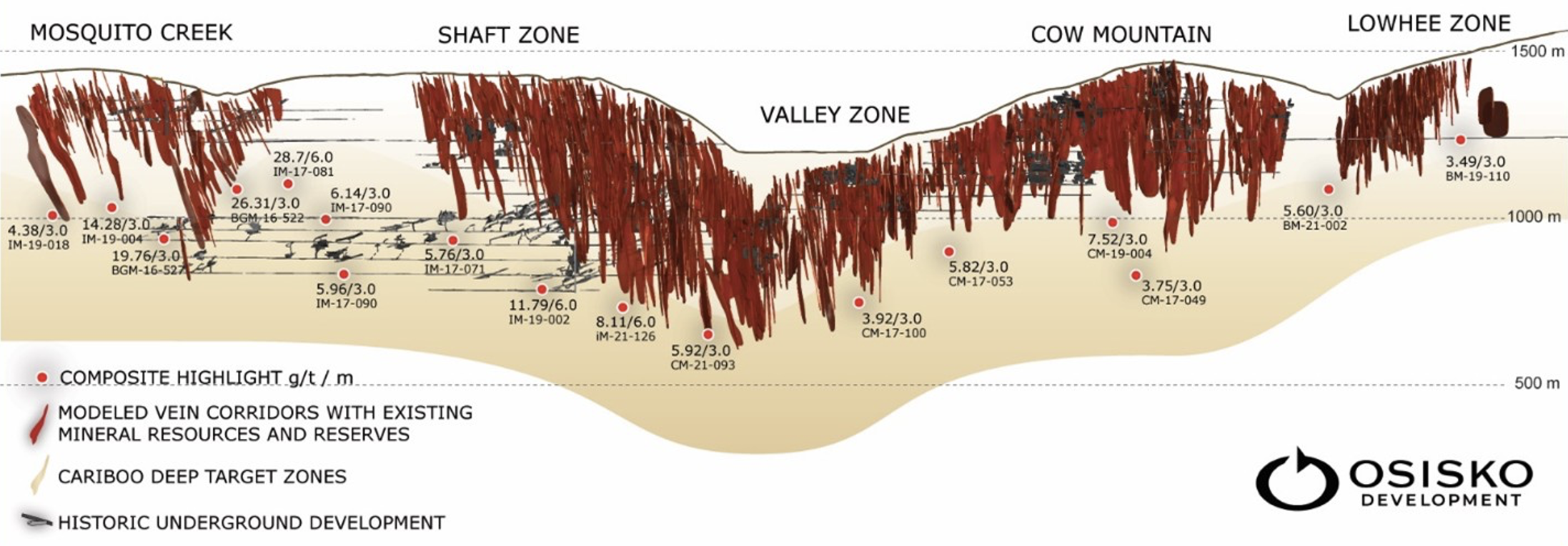 Im Detail sollen bei ‚Cariboo Deep‘ etwa 10.000 m in zunächst 11 Bohrlöchern zurückgelegt werden, um das Potenzial für eine Erweiterung des Gangkorridors der ‚Cariboo‘-Lagerstätte bis zu einer vertikalen Tiefe von 800 m zu untersuchen. Anders gesagt, wären das 450 m mehr an Potenzial für zusätzliche Unzen, da ‚Cariboos‘ aktuelle Mineralressourcen und -reserven bisher nur bis zu einer durchschnittlichen Tiefe von 350 m unter der Oberfläche getestet wurden.