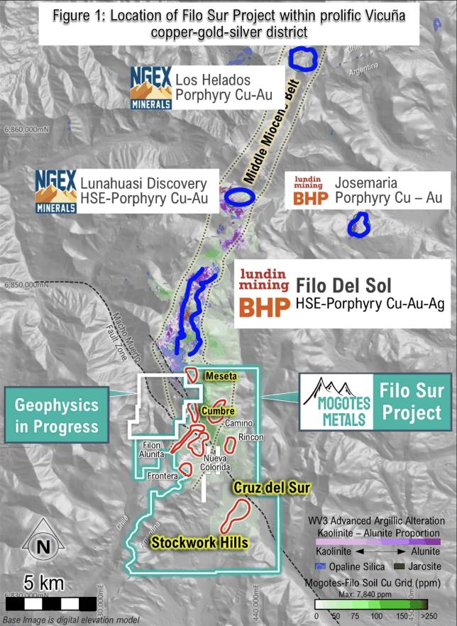 Das Filo-Sur-Projekt von Mogotes Metals Inc. (WKN: A3ENQ6) stellt ein zentralesExplorationsvorhaben des Unternehmens dar und befindet sich in einer der geologisch vielversprechendsten Regionen Südamerikas, dem Vicuña-Mineraldistrikt an der Grenze zwischen Argentinien und Chile.