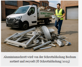Vor diesem Hintergrund gewinnt eine funktionierende, niedrigschwellige Rückführung von Aluminiumschrott in den Wertstoffkreislauf zunehmend an Bedeutung. Mit der Schrottabholung Bochum, einem regionalen Service von Schrottabholung.org, steht Privathaushalten, Handwerksbetrieben sowie Industrie- und Gewerbeunternehmen im Ruhrgebiet ein kostenloser und unkomplizierter Abholservice für Metallschrott zur Verfügung. Ziel ist es, wertvolle Rohstoffe wie Aluminium direkt vor Ort einzusammeln und einer fachgerechten, zertifizierten Wiederverwertung zuzuführen.