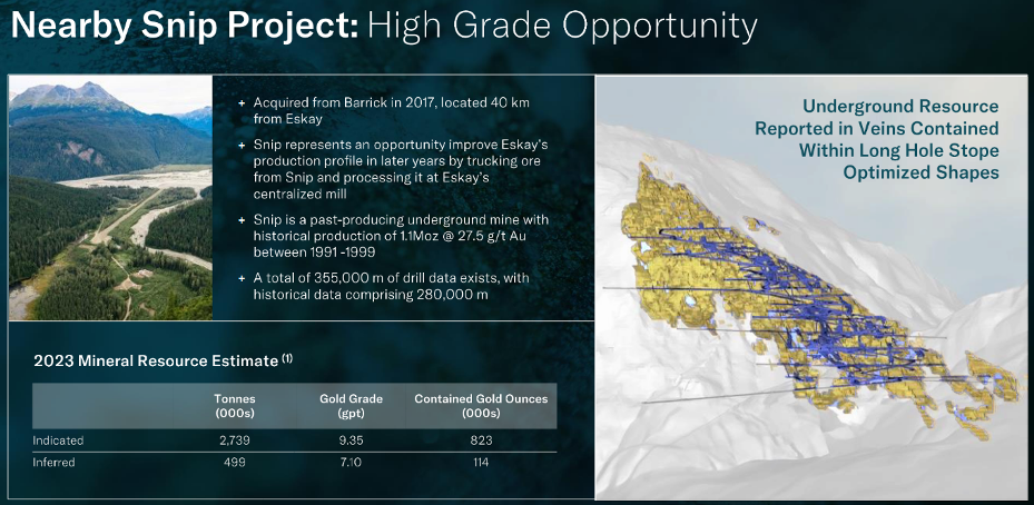 Dazu kommt, dass das Unternehmen mit dem gerade einmal 40 km von ‚Eskay Creek‘ entfernten ‚Snip‘-Projekt zusätzliches Portfolio-Potenzial besitzt. Denn die ehemalige Untertage-Mine beherbergt geschätzt satte 0,94 Millionen Unzen Gold (angezeigt + abgeleitet) mit einem Gehalt von erstklassigen 9,35 g/t Au. Zudem wurden hier zwischen den Jahren 1991 und 1999 insgesamt fette etwa 1,1 Millionen Unzen Gold mit einem Gehalt von großartigen 27,5 g/t Au zutage gefördert.