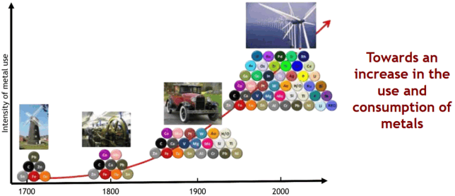Europa ist im Zuge der industriellen Entwicklung und insbesondere der Energiewende rohstoffmäßig unter Druck. Während der Metallverbrauch seit dem 18. Jahrhundert mit jeder technologischen Epoche kontinuierlich gestiegen ist – von einfachen mechanischen Anwendungen über die Industrialisierung bis hin zu Automobilität, Digitalisierung und erneuerbaren Energien – hat sich nicht nur die Menge, sondern auch die Vielfalt der benötigten Metalle deutlich erhöht.