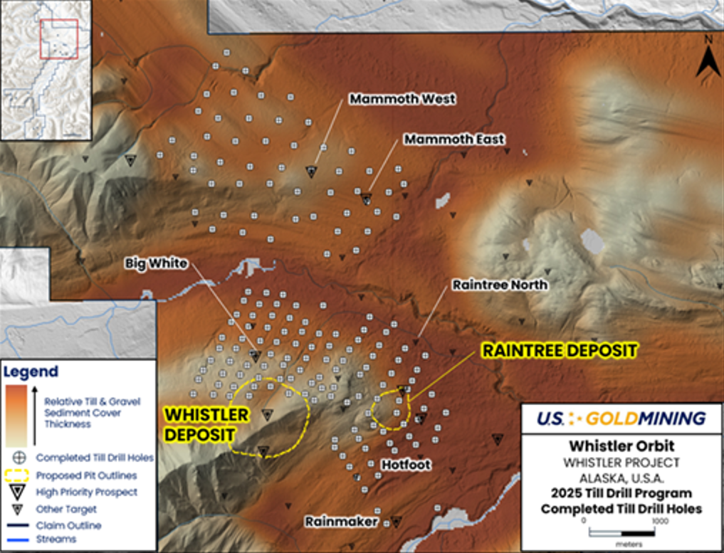 Besonders spannend ist die großflächige Bedeckung durch Lockermaterial (Till) wirkt auf den ersten Blick wie ein Hindernis, ist in der Exploration aber oft der Schlüssel. Denn wenn sich mineralisierte Signaturen im Material verfolgen lassen, entstehen Hinweise auf verdeckte Systeme – genau dort, wo der Markt Entdeckungen liebt. Damit steigt die Wahrscheinlichkeit, dass ‚Whistler‘ nicht nur ‚Ressource‘, sondern ‚District‘ wird.