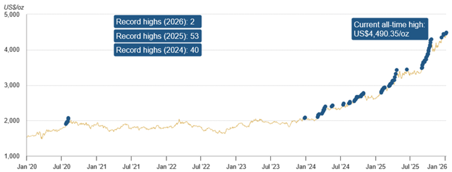 Gold sendet ein klares Signal: Laut World Gold Council wurden seit 2024 insgesamt 95 neue historische Hochs markiert.