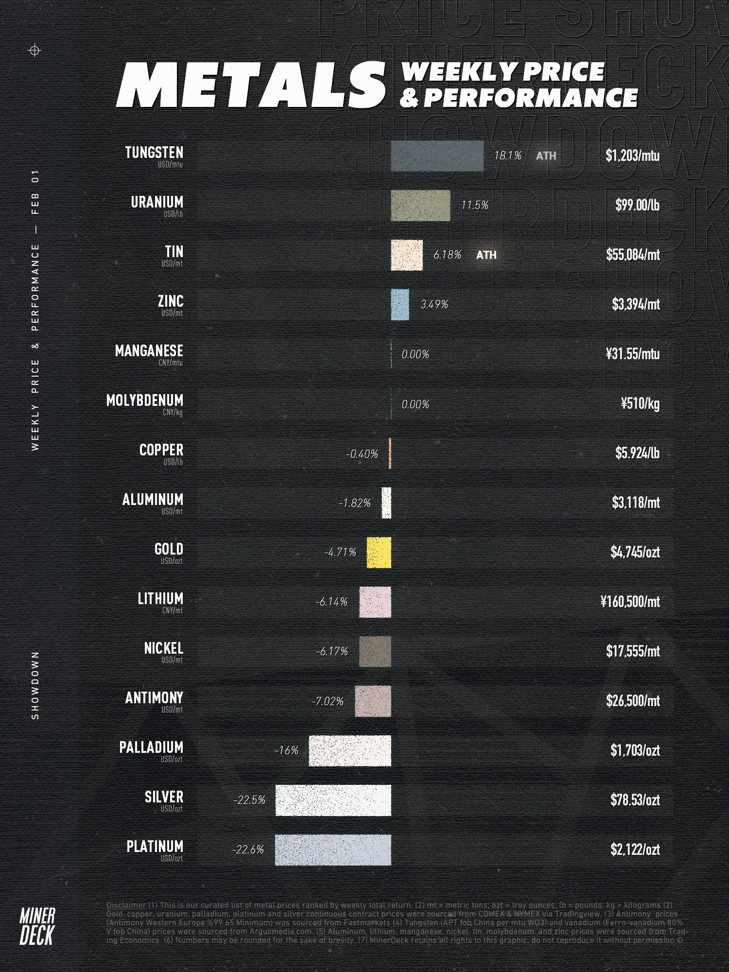 Nach anfänglich weiteren Rekordpreisen kam am Freitag die eiskalte Dusche! Nachdem Kupfer am Donnerstag intraday erstmals über 14.500,- USD/t notierte, ruderte das Industriemetall am Freitag auf etwa 13.465,- USD/t zurück, trotz weiterhin akuter Angebotsknappheit und strukturell hoher Nachfrage. Gold markierte ein Allzeithoch bei knapp um die 5.600,- USD/oz, fiel anschließend um etwa 10 %. Silber erreichte ein Hoch von fast 125,- USD/oz, und korrigierte am Freitag historisch, um deutlich über 30 % im Tief!