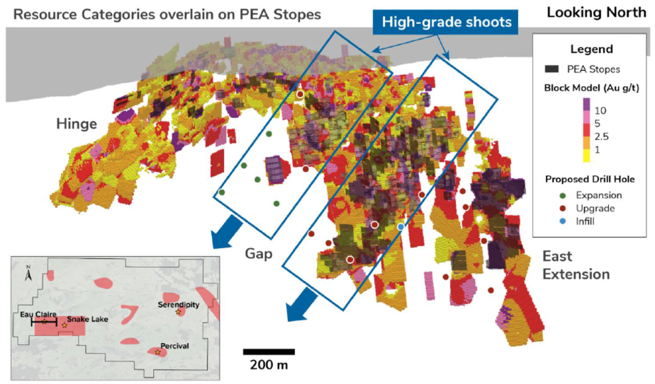 Ein Ziel ist dabei auch, die Mineralressourcen außerhalb des abbaubaren Teils der Wirtschaftlichkeitsstudie zu verbinden, um noch mehr der vorhandenen Goldunzen in ein zukünftiges Entwicklungsszenario einzubeziehen. Außerdem liegt der Fokus natürlich auch darauf, zusätzliche Wachstumschancen für ‚Eau Claires‘-Mineralressourcen zu identifizieren.