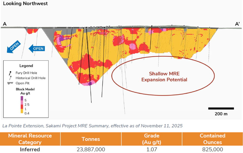 Nach Abschluss von 2.778 Bohrmeter, veröffentlichte Fury Gold Mines (WKN: A2QFEP) im Dezember 2025 eine erste Mineralressourcenschätzung für seine Portfolio-Perle ‚Sakami‘. Das Projekt mit seinen Top-Zielgebieten ‚La Pointe Extension‘, ‚La Pointe‘ und ‚Juliette‘ liegt ebenso wie ‚Eau Claire‘ im kanadischen Gold-Hotspot James Bay Region und ist durch die im April des letzten Jahres abgeschlossene Übernahme von Quebec Precious Metals Corporation in Furys hochgradigen Bestand übergegangen.