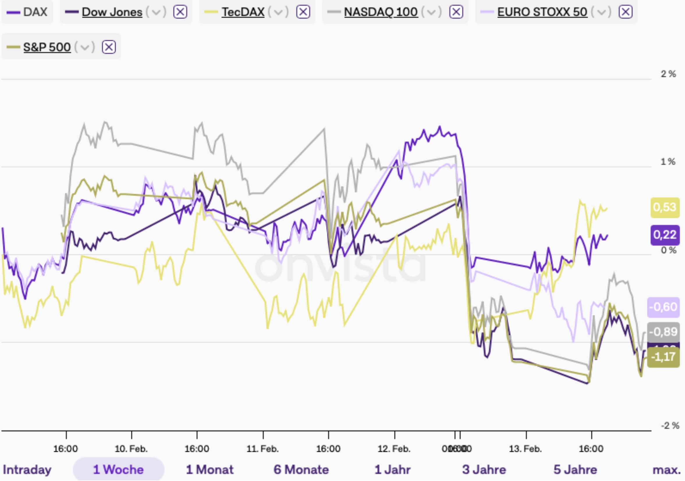 nachdem Softwarewerte bereits unter die Räder kamen, gerieten in den USA nun weitere Branchen unter Druck. Die Folge war ein spürbar nervöseres Bild: US-Indizes drehten ins Minus, während Europa dank solider Zahlen mehrerer Schwergewichte eher seitwärts tendierte.