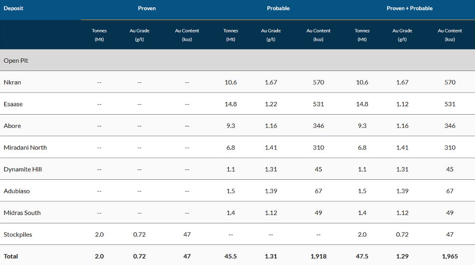Mineralressourcenschätzung für die Asanko-Goldmine einschließlich Nkran-Erweiterung (Stand: Dezember 2025):