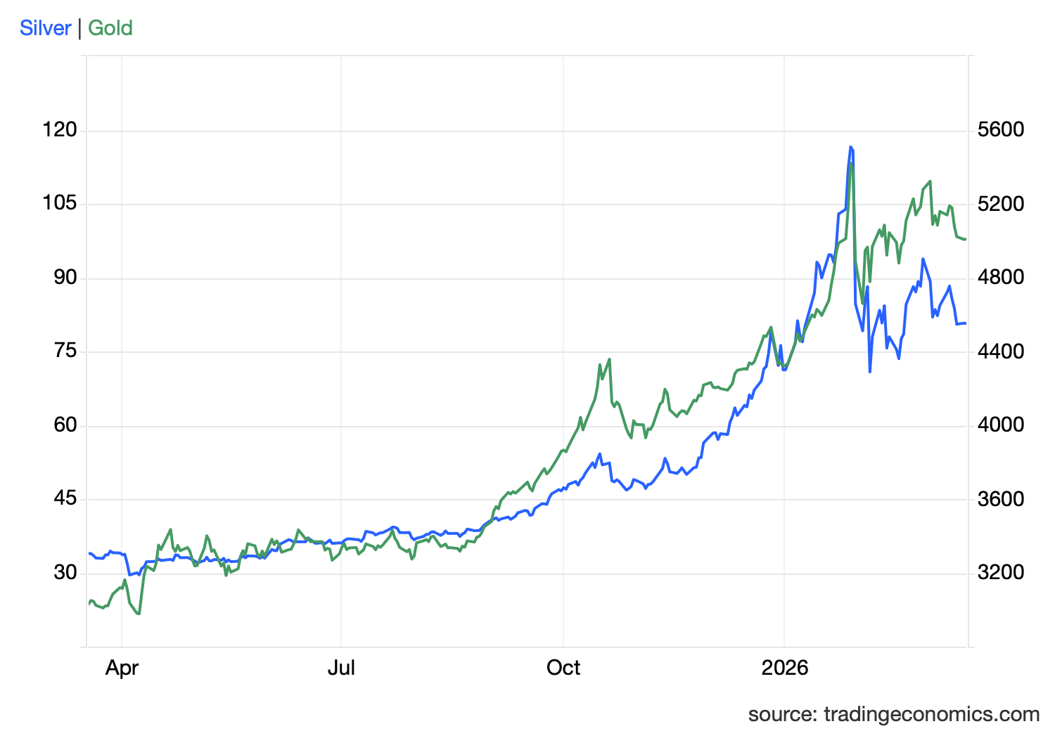 allen teils Korrekturen der jüngeren Vergangenheit zum Trotz behaupten sich Gold und Silber weiterhin auf einem hohen Niveau. Gold profitiert dabei von seiner Rolle als Krisen- und Reservewert, Silber zusätzlich von seiner industriellen Bedeutung. Genau diese Kombination schafft für ausgewählte Royalty-Gesellschaften ein konstruktives Umfeld. Silber hat nach seinem starken Anstieg seit Frühjahr 2025 zwar deutlich geschwankt, strukturell bleibt der Markt jedoch angespannt.